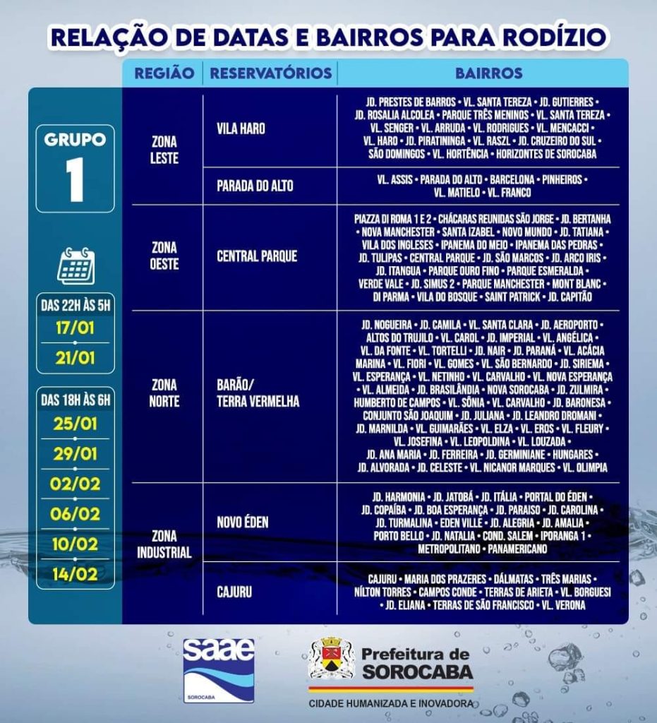 O rodízio no abastecimento de água em Sorocaba passa a operar 12 horas por dia, das 18h às 6h, a partir de hoje (25), segundo o Saae (Serviço Autônomo de Água e Esgoto).