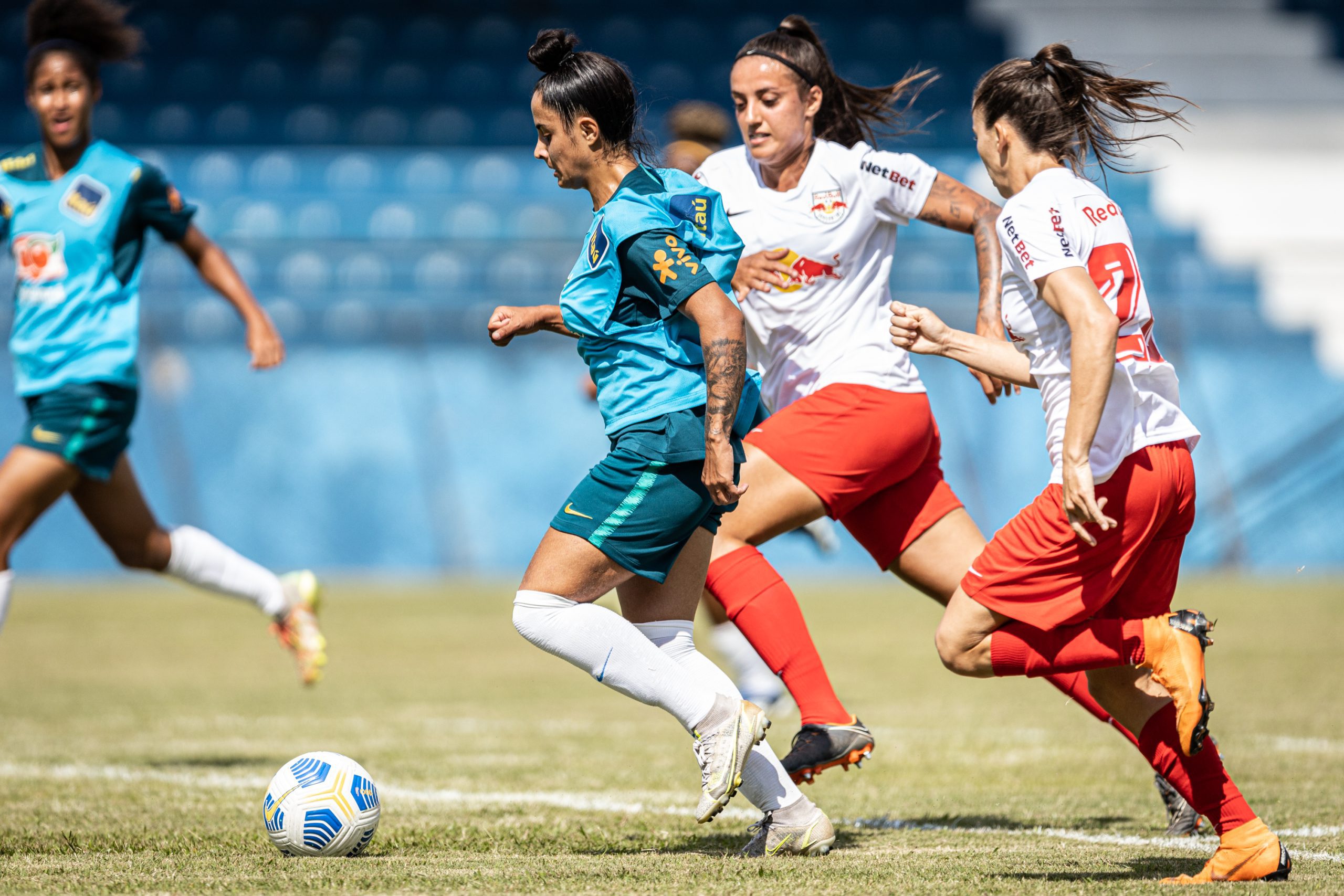 A Seleção Brasileira Feminina de Futebol Sub-20 realizou jogo-treino no Estádio Municipal “Walter Ribeiro” (CIC), na manhã deste domingo. Pelo placar de 3 a 1, a equipe venceu o time do Red Bull Bragantino, em partida preparatória para o Campeonato Sul-Americano, que ocorrerá no Chile, entre os próximos dias 4 e 25 de abril.