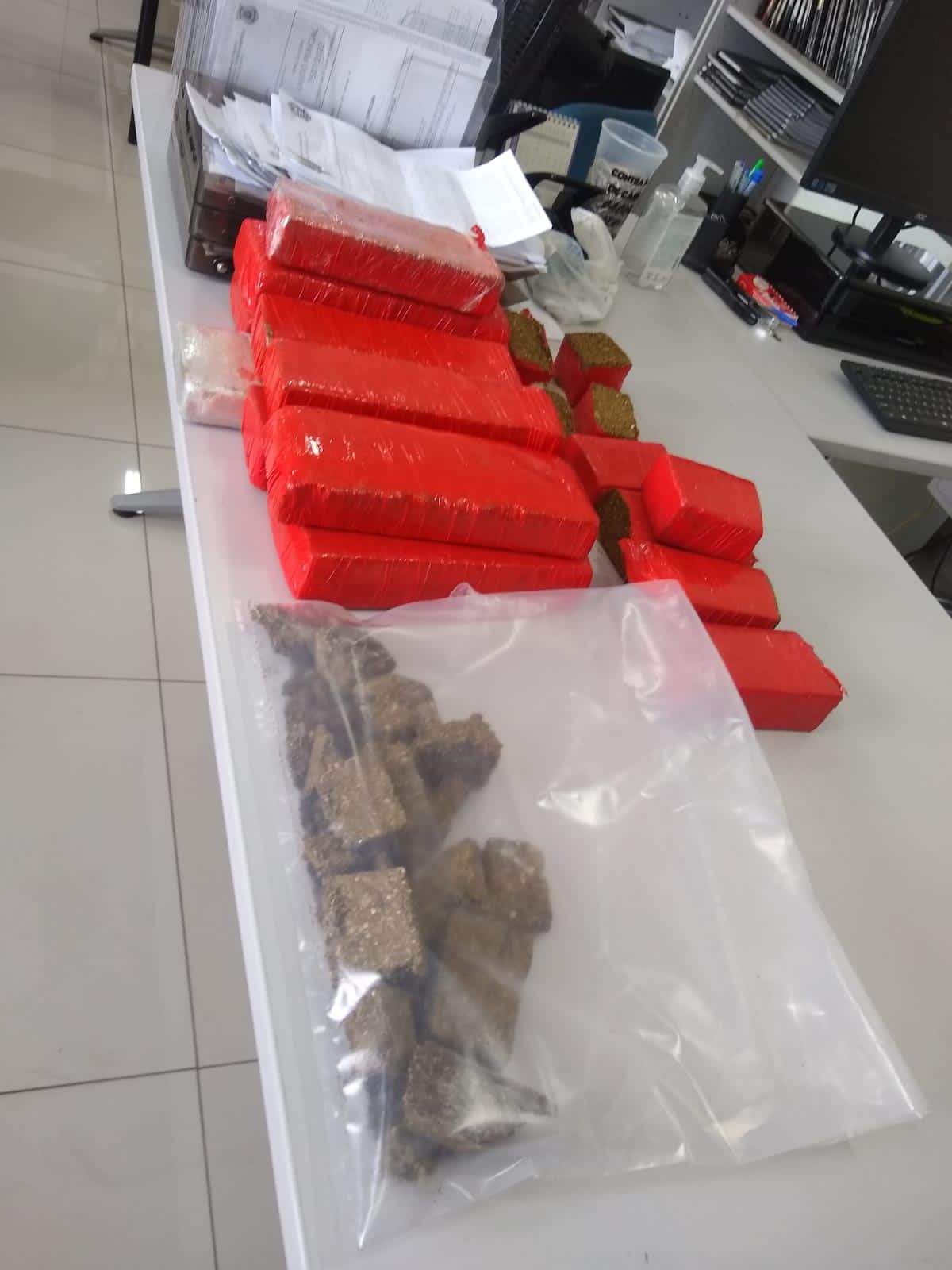 Na casa, os policiais encontraram as drogas escondidas dentro de barris e contêineres de lixo. Ainda acharam vários itens para o preparo e embalo dos entorpecentes e dois celulares. O delegado acredita que o local funcionava como um centro de distribuição de drogas.