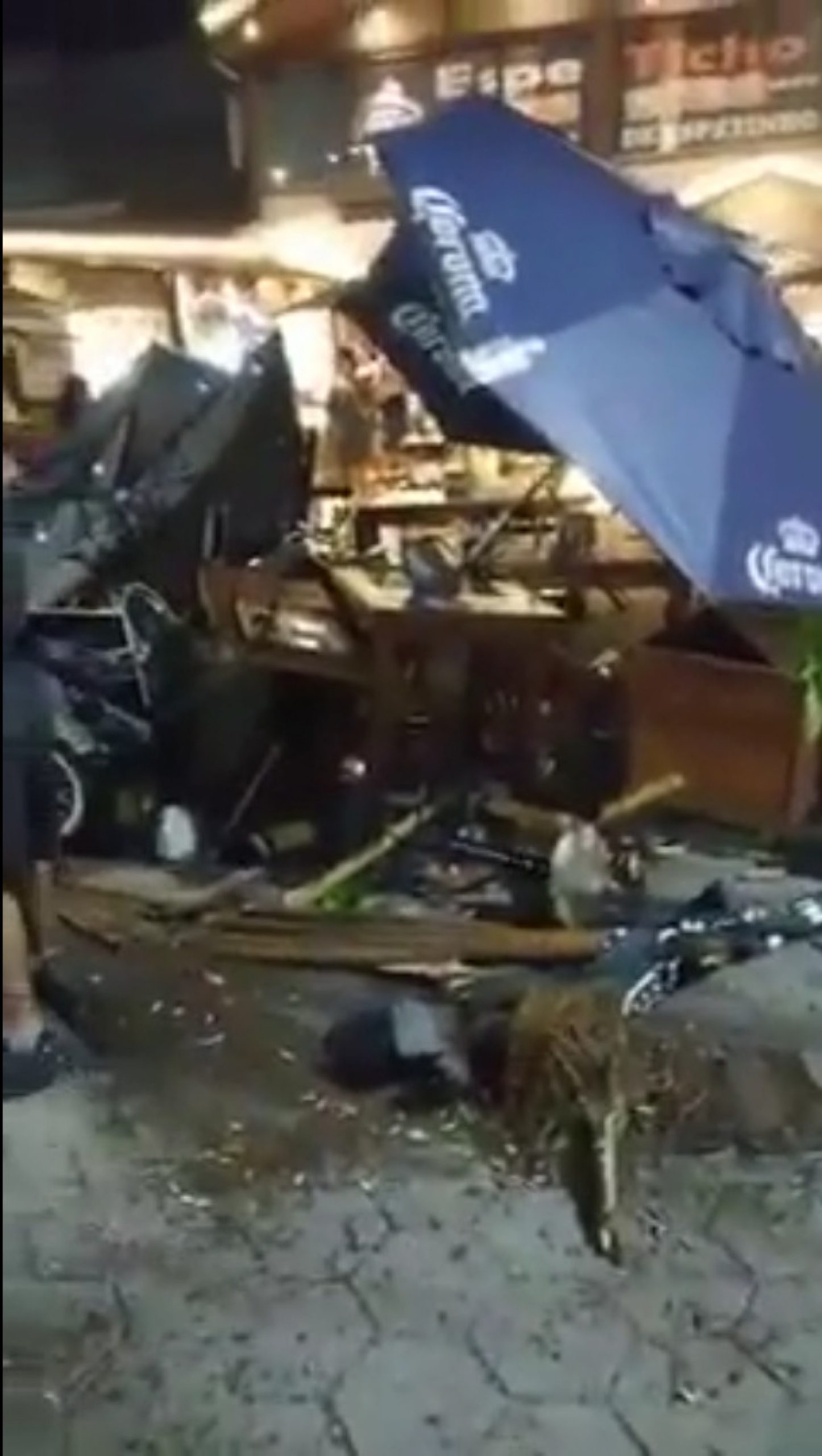 Um vídeo divulgado nas redes sociais mostra o local momentos após o acidente. Nas imagens é possível ver as mesas e cadeiras do estabelecimento destruídas.