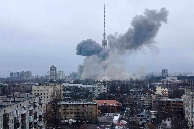 Um ataque russo atingiu uma torre de televisão em Kiev, na Ucrânia, nesta terça-feira (1º), e deixou cinco mortos, além de provocar a interrupção da transmissão de canais de TV, anunciou o Ministério do Interior ucraniano.