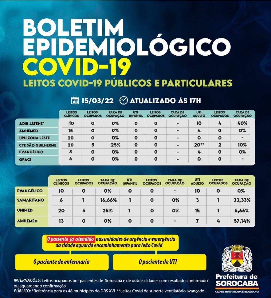 Esta quantidade de leitos já não aparece no censo de leitos divulgado hoje pela Secretaria Municipal da Saúde e é a primeira vez que o hospital deixa de operar com vagas para pacientes infectados pelo coronavírus, desde o início da pandemia há dois anos.