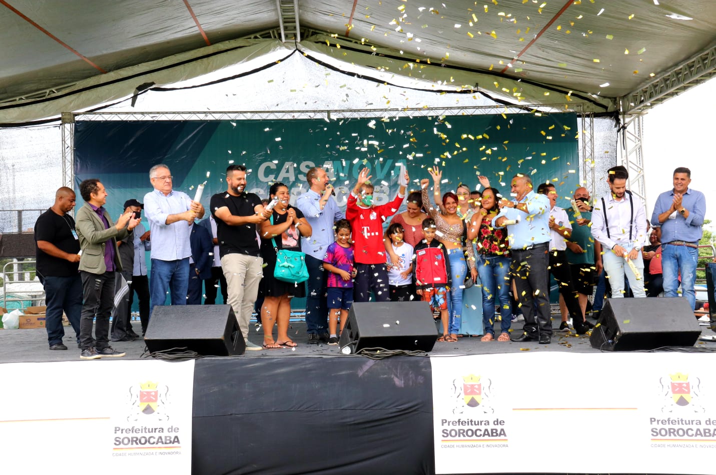 Com a presença de cerca de 8 mil pessoas nas arquibancadas do Estádio Municipal “Walter Ribeiro” (CIC), além de autoridades, servidores públicos e da imprensa, a Prefeitura de Sorocaba, por meio da Secretaria de Habitação e Regularização Fundiária (Sehab), realizou, no domingo (20), o sorteio eletrônico das moradias do primeiro empreendimento do programa Casa Nova Sorocaba, a maior iniciativa habitacional municipal do País. A sessão pública foi transmitida pelo YouTube da Prefeitura de Sorocaba (https://www.youtube.com/user/prefeituradesorocaba) e pela TV Câmara, e a abertura da solenidade também foi exibida pelo Facebook e pelo Instagram oficiais (@prefeituradesorocaba).