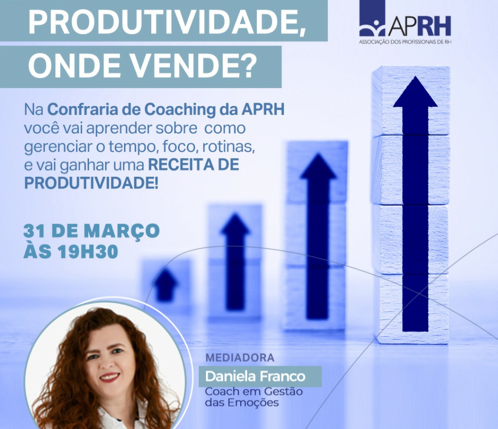 A próxima Confraria de Coaching da APRH traz o tema “Produtividade”, e você vai aprender sobre como gerenciar o tempo, foco, rotinas… E mais: quem participar ainda vai ganhar uma receita de produtividade.
