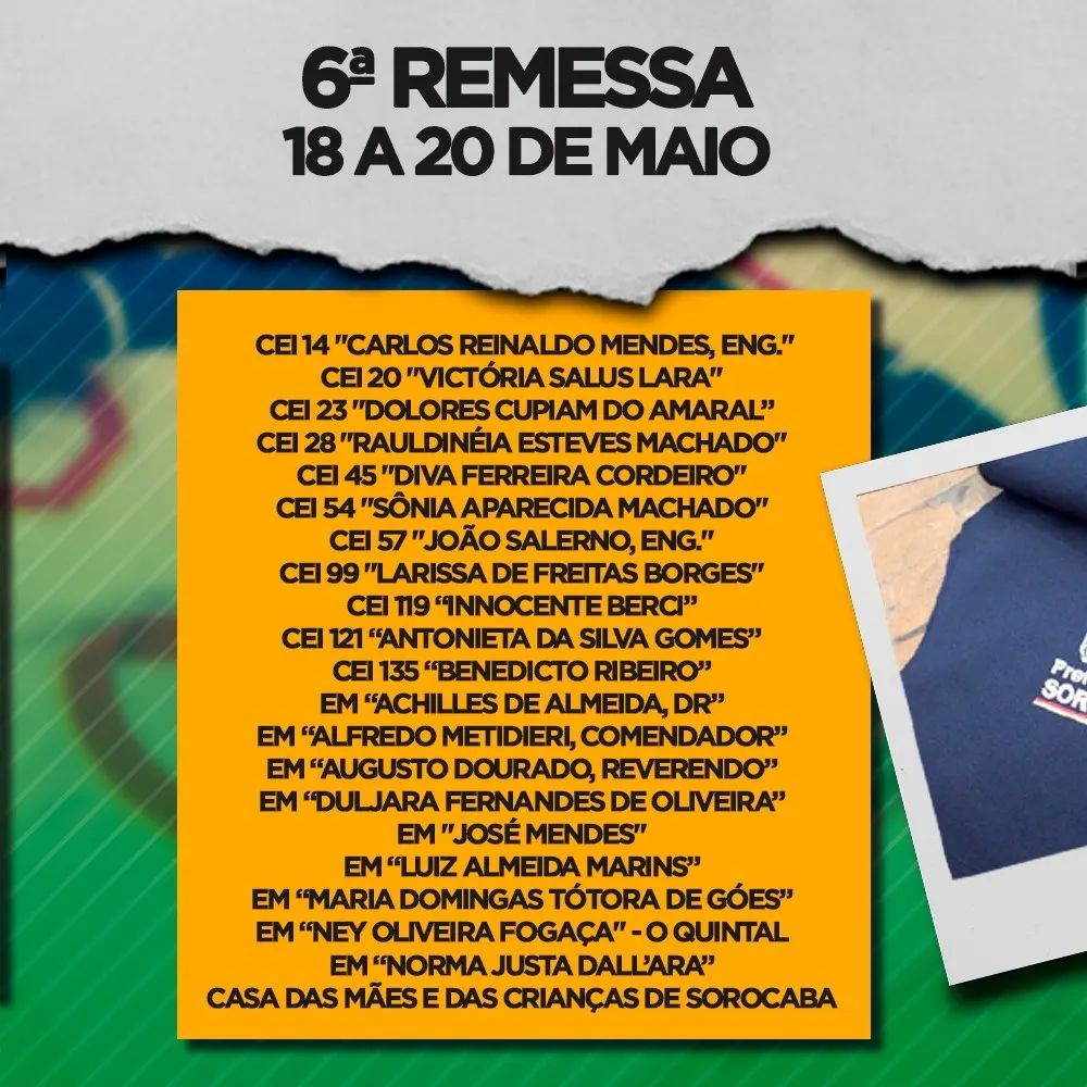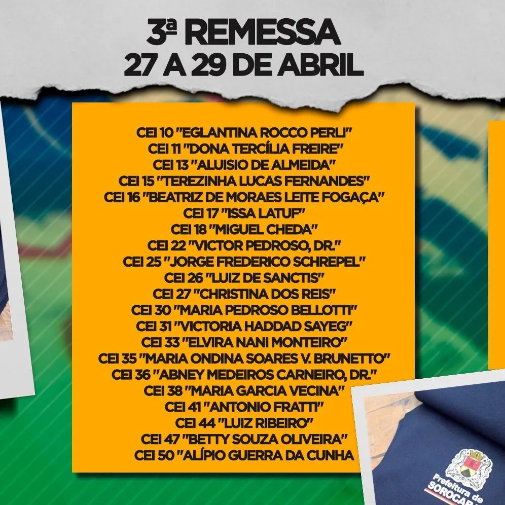 O prefeito destaca ainda em seu post que não estão todas as escolas nessa divulgação de entrega dos uniformes e que novas programações serão divulgadas nos próximos dias.