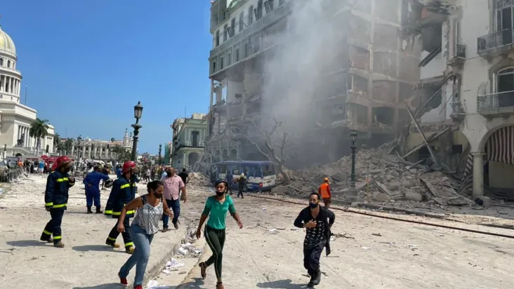 A explosão, que balançou a capital cubana de Havana, destruiu a parte frontal do hotel, e as investigações preliminares indicam que o motivo da explosão foi um vazamento de gás.