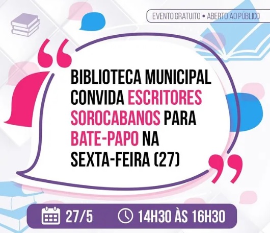 Nesta sexta-feira (27), das 14h30 às 16h30, a Prefeitura de Sorocaba, por meio da Secretaria de Cultura (Secult), promove um encontro gratuito com escritores locais, na Biblioteca Municipal “Jorge Guilherme Senger”, no Alto da Boa Vista. Já, das 13h às 16h, o espaço público sediará a atividade de troca de livros.