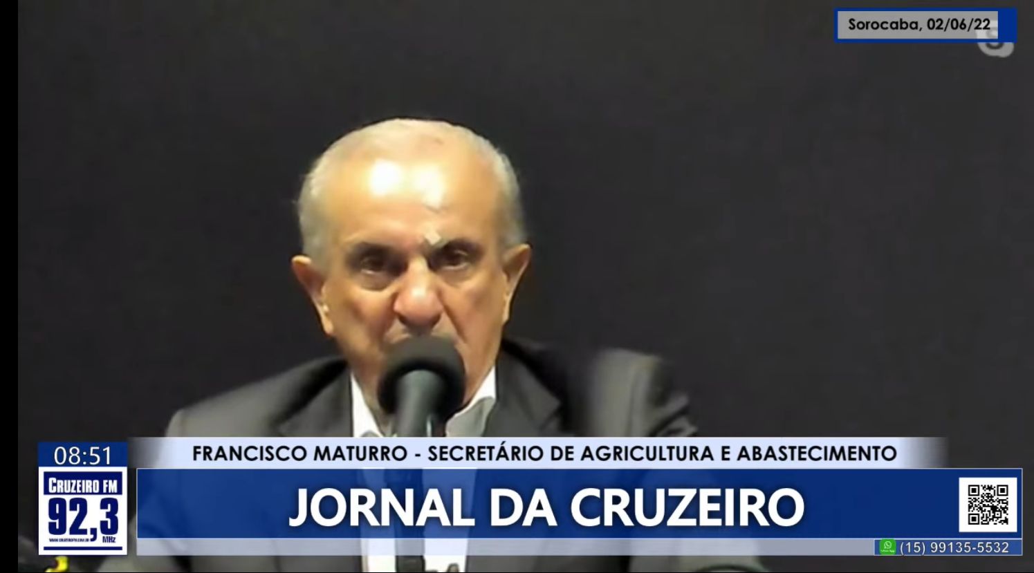 O Jornal da Cruzeiro desta quinta-feira (2) entrevistou o secretário estadual da Agricultura e Abastecimento de São Paulo, Francisco Matturro. Ele falou sobre ações do segmento, rotas rurais, segurança no campo, investimentos e pesquisas, novos veículos, fiscalização, linhas de crédito, entre outros assuntos.