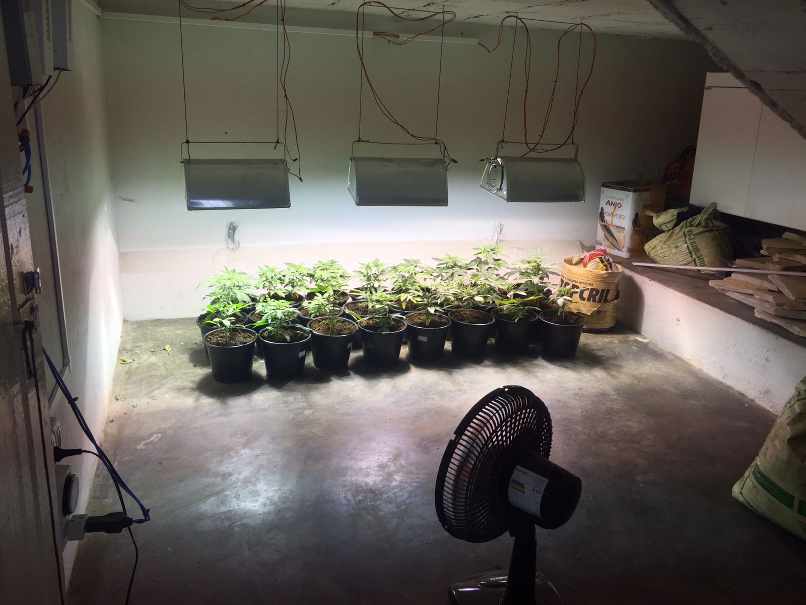 Foram apreendidos diversos pés de maconha que estavam em estufas, além de produtos para o cultivo do entorpecente.
