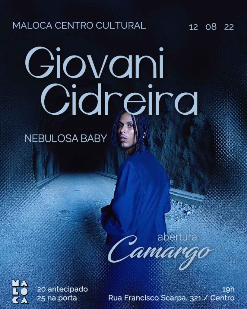 “Estou muito empolgado para apresentar meu novo show em um espaço como a Maloca Centro Cultural, que resiste e apoia artistas independentes”, finaliza Giovani.