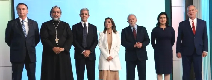 Outros cinco candidatos participaram: Ciro Gomes (PDT) Simone Tebet (MDB), Felipe D’Avila (Novo), Soraya Thronicke (União Brasil) e Padre Kelmon (PTB).