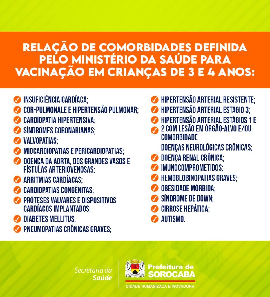 No caso das crianças, no ato da imunização, precisam estar acompanhadas dos pais ou responsáveis e portando a Carteirinha de Vacinação, o documento de identidade e o CPF ou Cartão do SUS, todos estes documentos da própria criança. Os pais ou responsáveis de crianças com comorbidades ou deficiências devem apresentar igualmente um comprovante da condição de risco delas (exames, receitas, relatório médico, prescrição médica ou cadastro já existente na UBS). Para adiantar em até 90% o tempo de atendimento na hora da imunização da criança contra Covid-19, os pais ou responsáveis podem acessar o site: www.vacinaja.sp.gov.br e efetuar o pré-cadastro. A iniciativa tem como objetivo evitar aglomerações. Quem não conseguir realizar o pré-cadastro da criança, o mesmo poderá ser feito presencialmente na UBS.