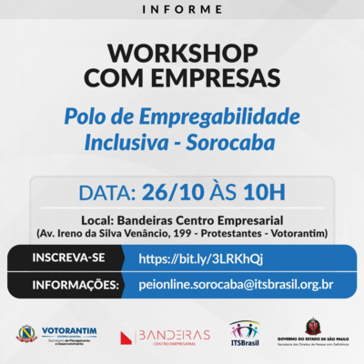 A ação visa incentivar a entrada, a inclusão e a permanência da pessoa com deficiência e acontece no Bandeiras Centro Empresarial (Av. Ireno da Silva Venâncio, 199 – Protestantes – Votorantim) a partir das 10:00. Durante evento, os presentes receberão suporte em relação ao emprego apoiado, assim como na abordagem do profissional com deficiência, além de roda de conversa sobre processos seletivos inclusivos. Na ocasião, também serão apresentadas informações sobre as ações que são realizadas pelo PEI, em prol da inclusão profissional das pessoas com deficiência da região.
