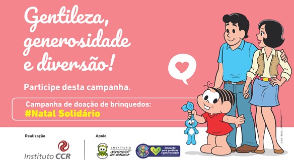 O Instituto CCR, que gerencia o investimento social do Grupo CCR, e a Umbigo do Mundo, em parceria com o Instituto Maurício de Sousa, promovem a campanha Natal Solidário em todos os modais da empresa: mobilidade urbana, rodovias e aeroportos.