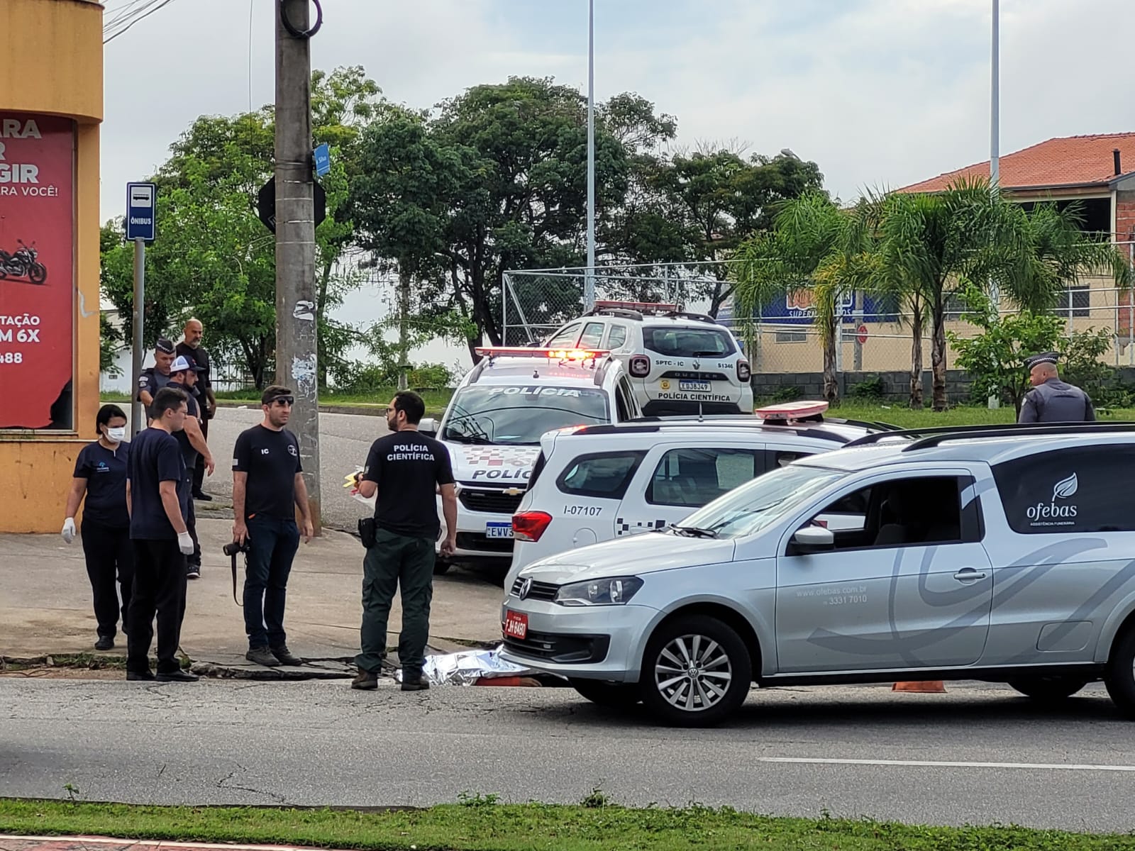 Policiais Militares e equipes da Polícia Científica estão no local.