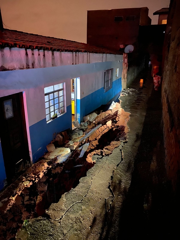 Os moradores da residência foram orientados a deixar o imóvel, pois havia risco da queda de outra parte do muro. O local foi isolado pela Defesa Civil.
