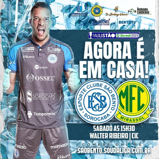 Os ingressos para o jogo entre São Bento e Mirassol já estão à venda, pelo site https://saobento.soudaliga.com.br/ ou no posto autorizado: KMF Baterias, na rua Atanázio Soares, nº 1150 . Os preços são: R$ 40 (inteira) e R$ 20 (meia-entrada), para a arquibancada; e R$ 60 (inteira) e R$ 30 (meia) nas cadeiras. Crianças de até 10 anos terão o benefício da gratuidade (exceto setor visitante). A bilheteria do CIC funciona apenas no dia da partida, das 10h até o intervalo. A Cruzeiro FM transmite o jogo em todas as plataformas, a partir das 14h do sábado (04), a apresentação será de Caio César, plantão esportivo Juarez Morato, reportagens Victor Duarte, comentários Gustavo Gebaile e narração de Nilson Duarte.