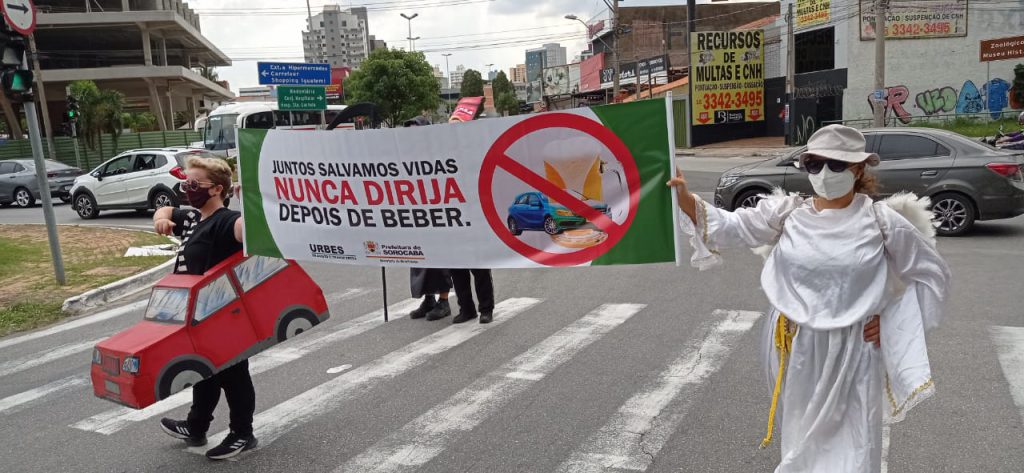 Os perigos envolvidos na combinação álcool e direção também serão abordados no dia 24 de fevereiro, na atividade denominada “Garrafa”, que ocorrerá na Avenida Dom Aguirre, altura da Praça Lions, das 9h às 11h. No cruzamento, durante o tempo de parada de veículos no semáforo, haverá personagens fantasiados de garrafa de cerveja, automóvel e, até mesmo, a figura da morte. “A apresentação é finalizada com o descerramento da uma faixa com os dizeres: ‘Juntos, salvamos vidas. Nunca dirija depois de beber’”, destaca a gerente de Educação para o Trânsito da Semob.
