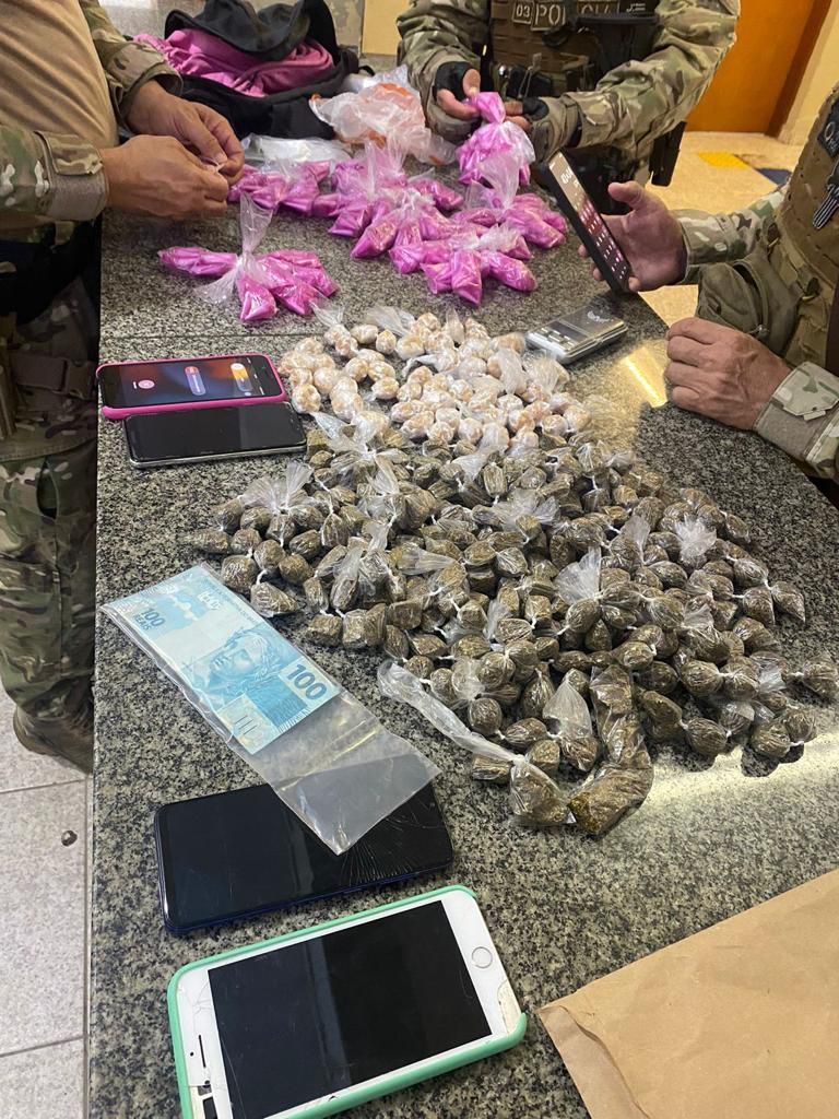No total, foram empregados na operação aproximadamente 50 policiais, 17 viaturas, cães farejadores e um drone.