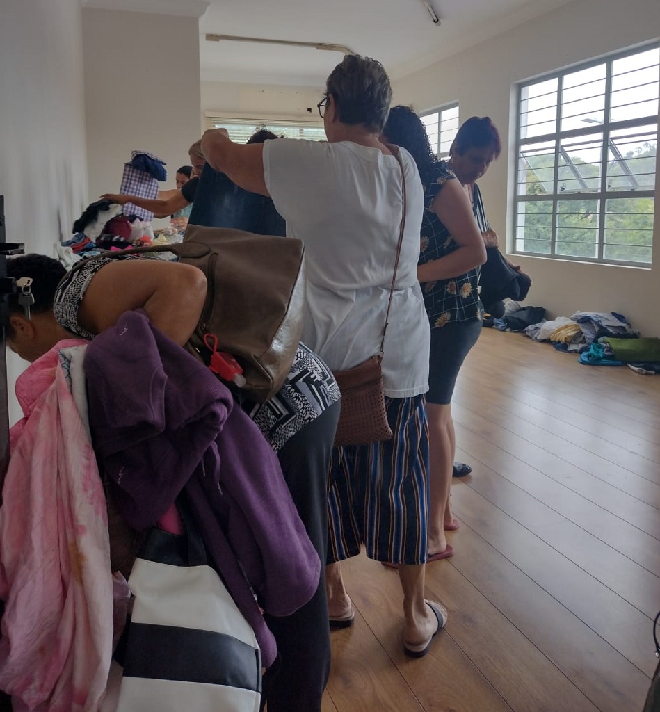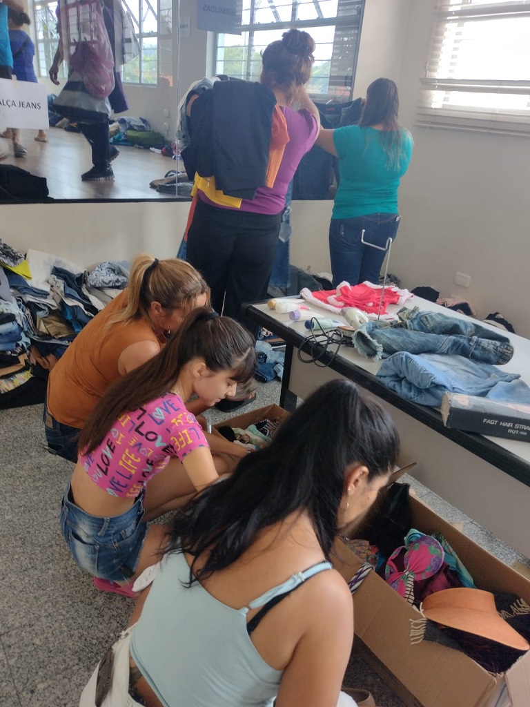 Diversos itens foram disponibilizados para compra, incluindo roupas femininas, masculinas e infantis, além de utensílios domésticos, como ferro de passar, batedeira, chapinha, louças e forno micro-ondas, entre outros.