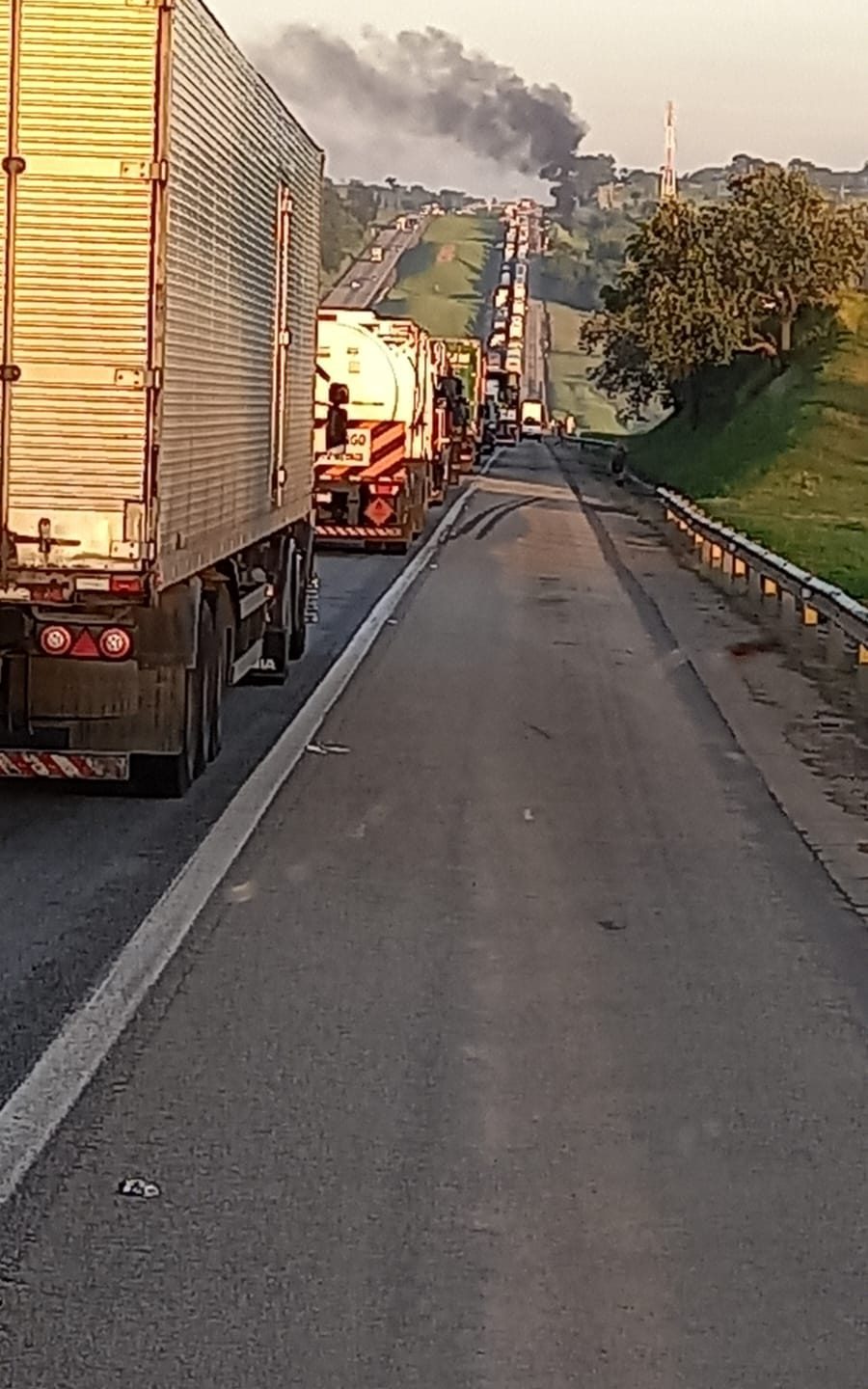A ocorrência aconteceu por volta das 5h30, na altura do quilômetro 91, sentindo interior. De acordo com a concessionária que administra o trecho, um veículo bateu na traseira do outro e o caminhão-tanque, que estava carregado, pegou fogo. Já a carreta transportava peças de concreto. A ocorrência foi atendida pelo Corpo de Bombeiros e as chamas foram controladas.