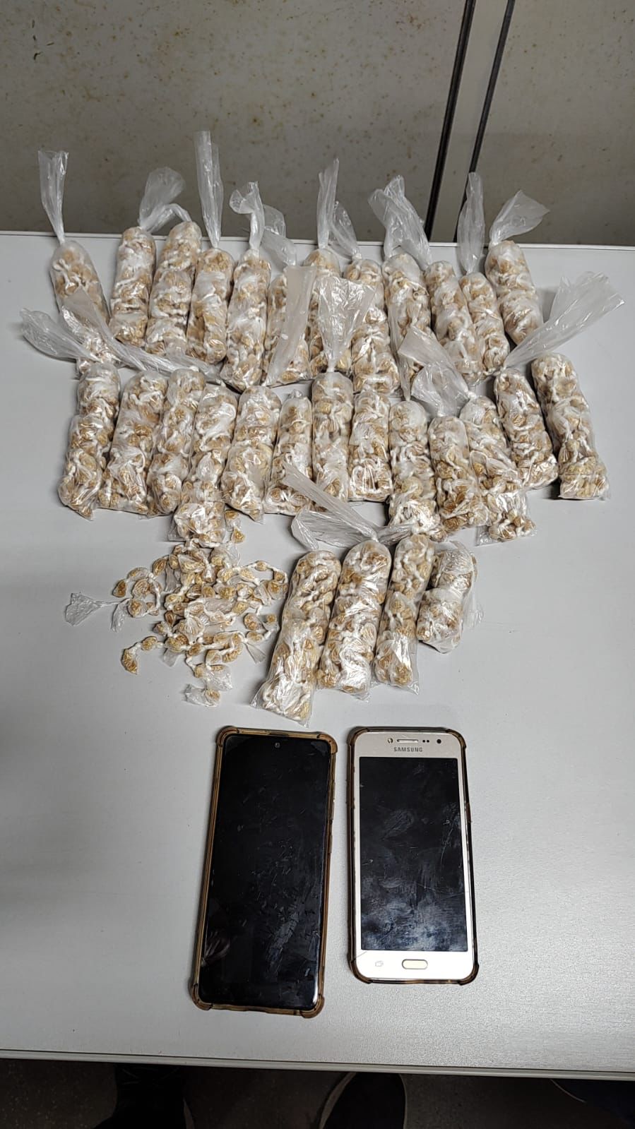 Em busca pessoal, nada de ilícito foi localizado, porém, depois que o investigado permitiu que as equipes entrassem em sua casa, dentro do quarto foram encontradas sacolas com 2.100 porções de crack.