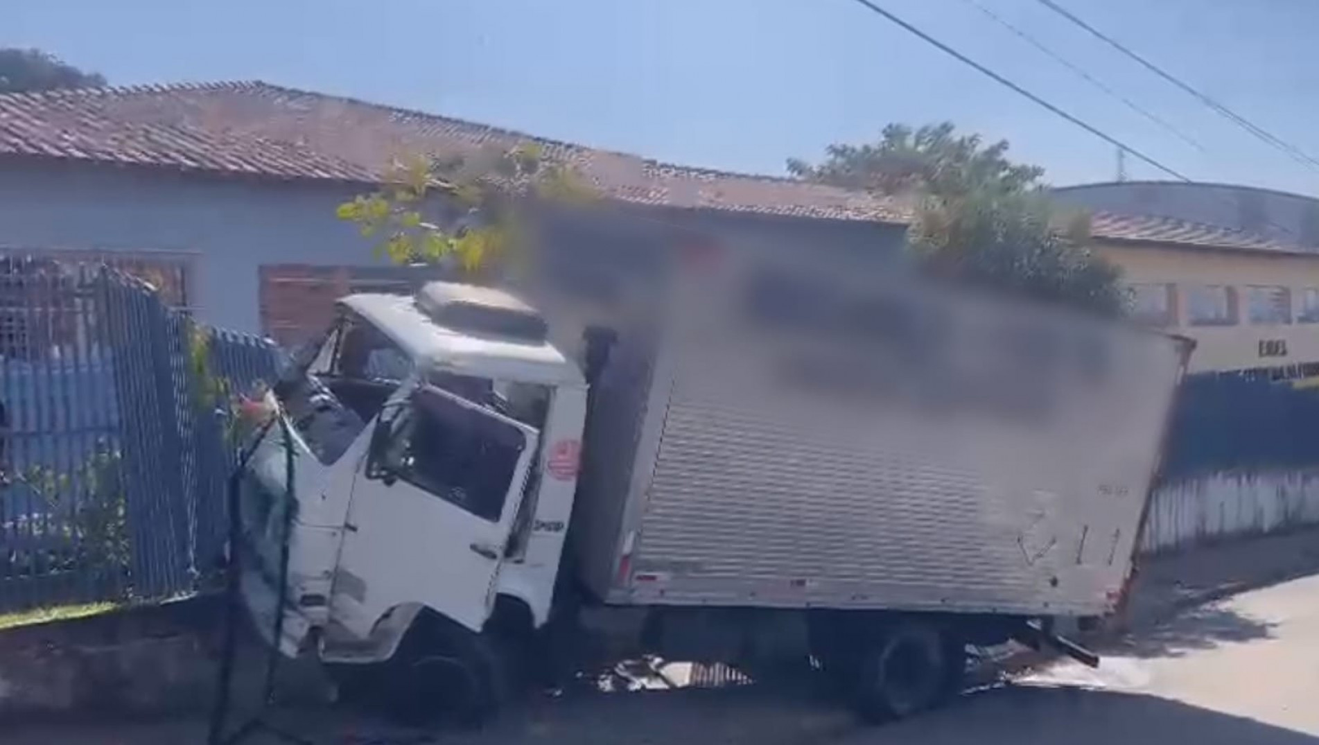 O motorista de um caminhão ficou ferido após bater no muro da Escola Municipal Jayme Ferreira da Fonseca, no Jardim Paulistano, em Salto de Pirapora.