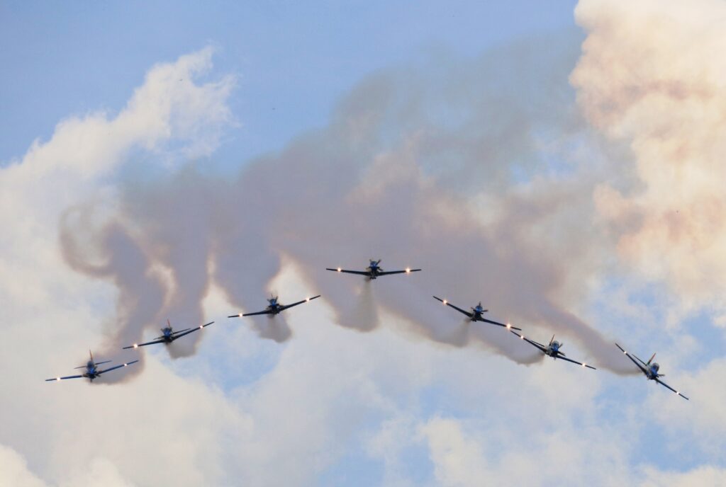 Olhos atentos para o alto, aplausos e gritos eufóricos deram o tom a cada movimento calculado das aeronaves. Dentre tantas atrações, a Grande Festa de Aniversário de 369 anos de Sorocaba teve seu ponto alto nas demonstrações da Esquadrilha da Fumaça, formada pelo Esquadrão de Demonstração Aérea (EDA) da Força Aérea Brasileira.