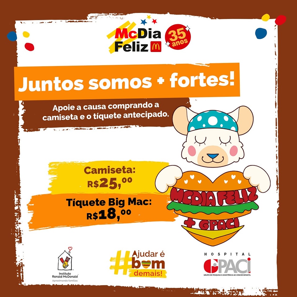 A 35ª edição do McDia Feliz, uma das maiores campanhas de mobilização em prol da saúde e educação de crianças e jovens do Brasil, vai acontecer no dia 26 de agosto (sábado) e a instituição beneficiada da nossa região é o Hospital GPACI.