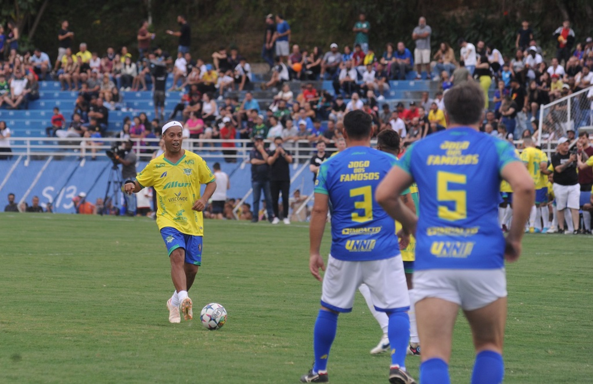 Mais de nove mil pessoas foram ontem (19) à tarde ao estádio Walter Ribeiro (CIC) para assistir ao Jogo dos Famosos entre os Amigos de Ronaldinho Gaúcho e os Amigos de Falcão, que trouxe personalidades do esporte e do mundo humorístico e artístico a Sorocaba. O evento foi promovido pela MAB Eventos com o apoio da Prefeitura. Os torcedores doaram um quilo de alimento não perecível para a campanha “A Fome não é Fake!”, do Fundo Social de Solidariedade (FSS). Os mantimentos serão destinados a famílias em situação de vulnerabilidade social no município.