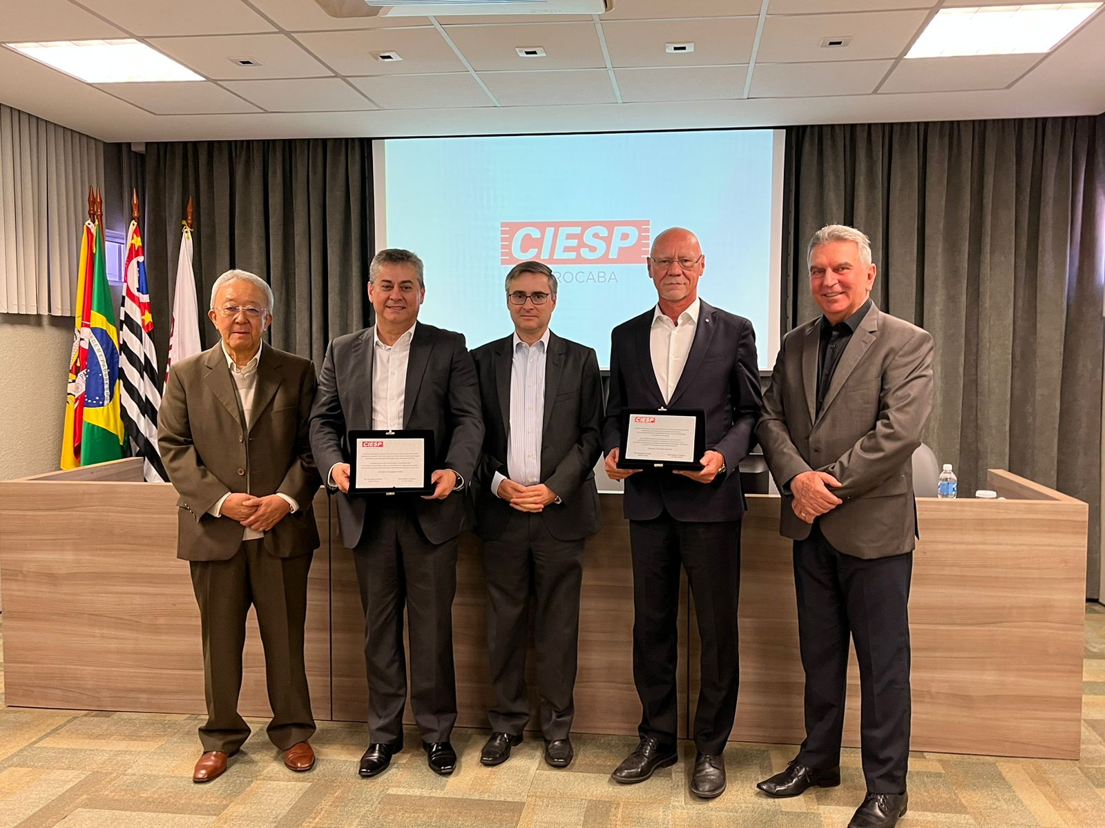 Depois das apresentações, os diretores homenagearam as empresas alemãs ZF e Schaeffler, ambas completando 65 anos de Brasil.