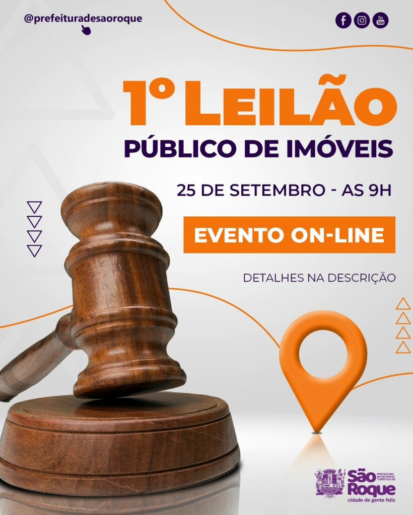 A Prefeitura de São Roque promoverá nos próximos dias dois Leilões Públicos de imóveis inservíveis. Os eventos serão realizados de forma on-line e oferecem oferece oportunidades únicas para investidores e interessados em adquirir propriedades no município. Os bens imóveis disponíveis podem ser consultados tanto no site oficial da Prefeitura quanto diretamente na plataforma onde o leilão será realizado.