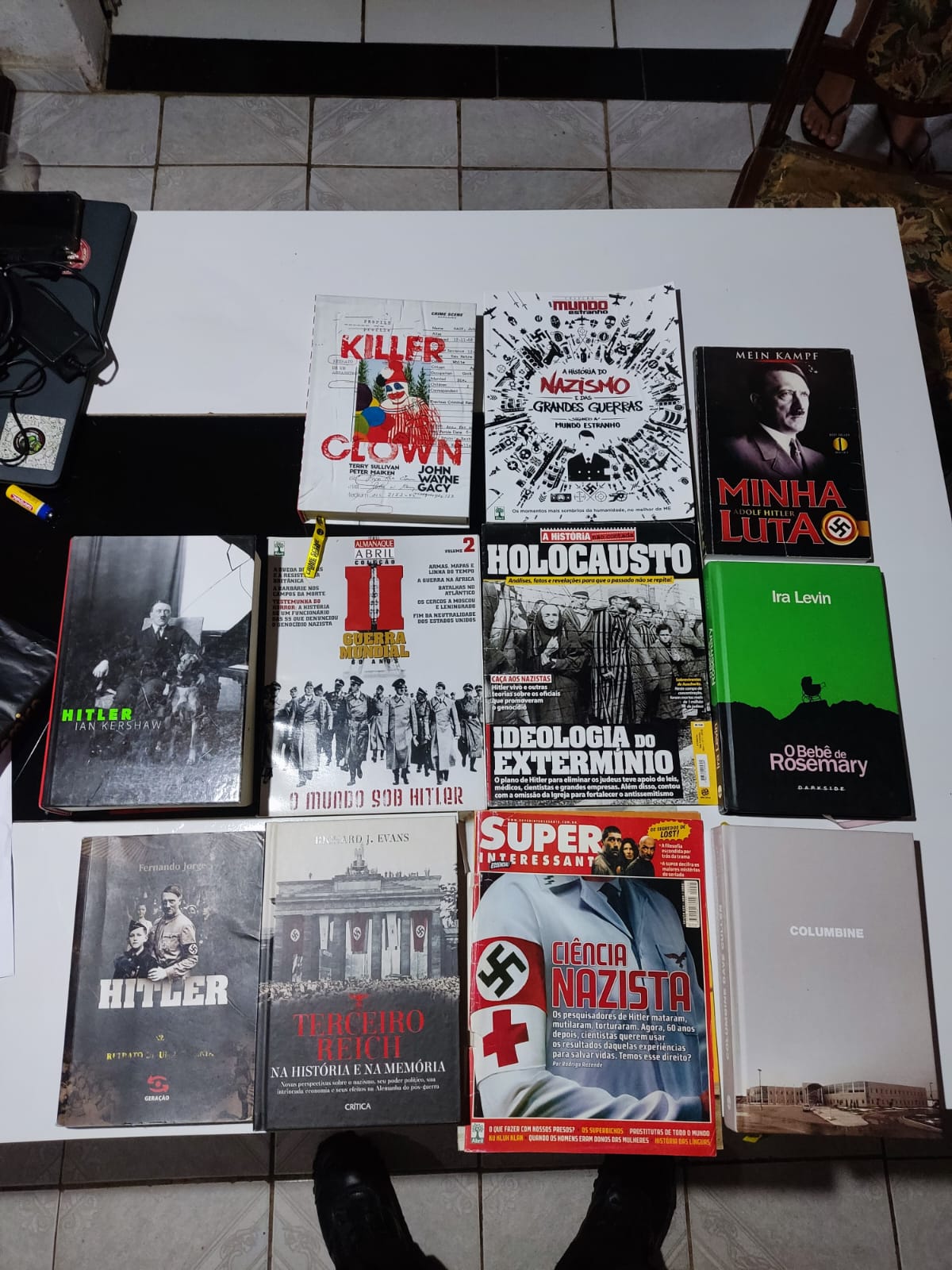 Durante as buscas também foram encontrados diversos livros relativos ao nazismo e a crimes de homicídio em massa.