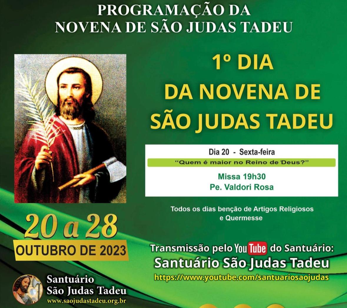 O Santuário São Judas Tadeu inicia, nesta sexta-feira (20) o primeiro dia da novena em honra a São Judas Tadeu. Todos os dias da Novena, que acontece de 20 a 28 de outubro, haverá a benção de Artigos Religiosos e Quermesse. Parte da renda com a quermesse será destinada ao hospital do Câncer Divina Misericórdia da Santa Casa de Sorocaba.