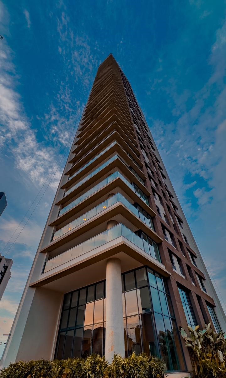 O projeto arquitetônico é do escritório Königsberger Vannucchi Arquitetos Associados, de São Paulo (SP). Um dos destaques do projeto é que as áreas comuns foram criadas em andares altos com a bela vista da cidade – o Sky Health Club & Spa no 21° andar, com sala de massagem e hidro, e o Sky Lounge & Gourmet no 29° andar.