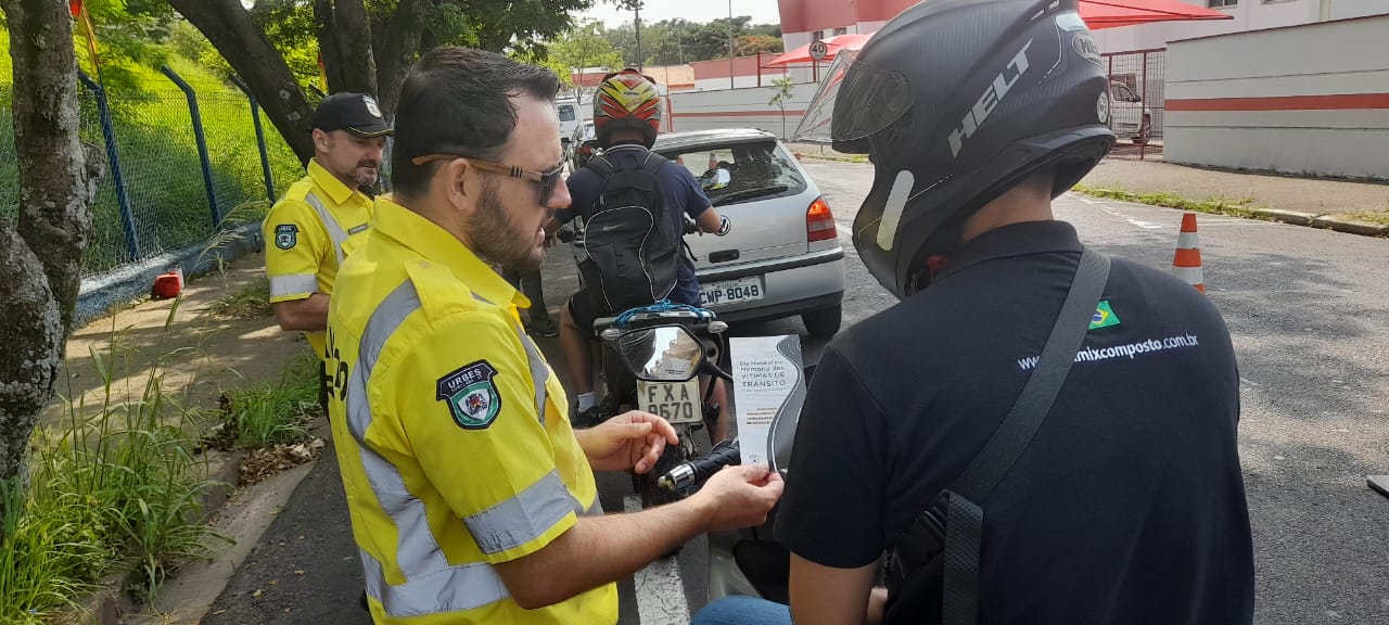 A Prefeitura de Sorocaba, por meio da Secretaria de Mobilidade (Semob), realizou uma blitz educativa alusiva ao Dia Mundial em Memória às Vítimas de Trânsito. A data é lembrada sempre no terceiro domingo de novembro, ou seja, neste ano, no próximo dia 19, porém, a ação de conscientização ocorreu de forma antecipada, na manhã desta sexta-feira (17), na Rua Prof.ª Ossis Salvestrini Mendes, no bairro Santa Rosália.