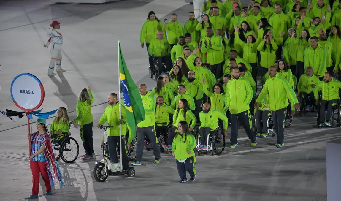 Quinta a desfilar, a delegação do Brasil teve como porta-bandeiras Claudiney dos Santos, bicampeão paralímpico do lançamento do disco, e Mariana d’Andrea, ouro na Paralimpíada de Tóquio, no Japão, em 2021. O país está em Santiago com 324 atletas com deficiência, além de dez atletas-guia do atletismo (que auxiliam os corredores cegos), três calheiros da bocha (modalidade para esportistas com elevado grau de comprometimento motor) e dois goleiros do futebol de cegos (únicos do time que enxergam).