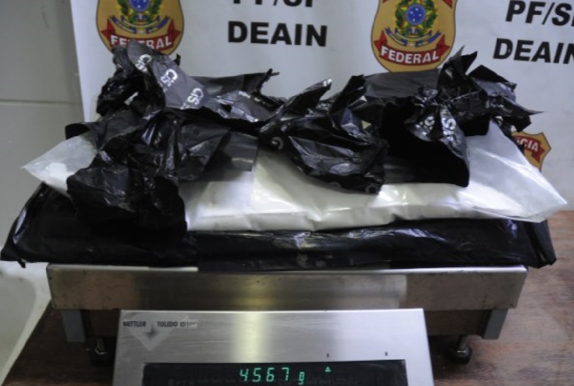 A Polícia Federal, no Aeroporto Internacional de São Paulo, prendeu na madrugada de hoje (1/12), um passageiro de voo internacional transportando cocaína na bagagem despachada.
