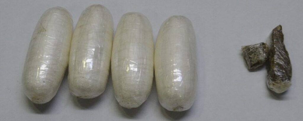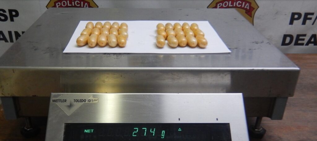 Na outra ação, a mesma equipe de policiais federais, no decorrer da busca pessoal, encontrou cápsulas de cocaína dentro da roupa íntima do passageiro. O homem também informou ter engolido outras cápsulas com a mesma substância e, por esse motivo, foi imediatamente conduzido ao hospital.