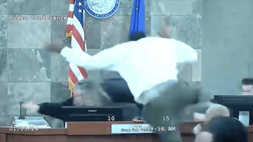 Um homem atacou uma juíza durante a leitura de sua sentença na manhã desta quarta-feira (3). O caso aconteceu no tribunal do Condado de Clark, em Las Vegas, no estado de Nevada e foi capturado pelas câmeras do tribunal.