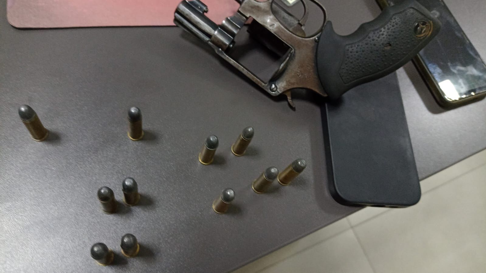 Ao chegar à residência, o filho apoderou-se de um revólver, jogando-o no terreno dos fundos. Próximo a ele, foi encontrado um coldre com munições. Após buscas, a arma, com numeração raspada, foi recuperada. O filho afirmou ser o proprietário, mas o pai admitiu ser o verdadeiro dono, adquirindo-a na “Feira do Rolo” em Sorocaba.