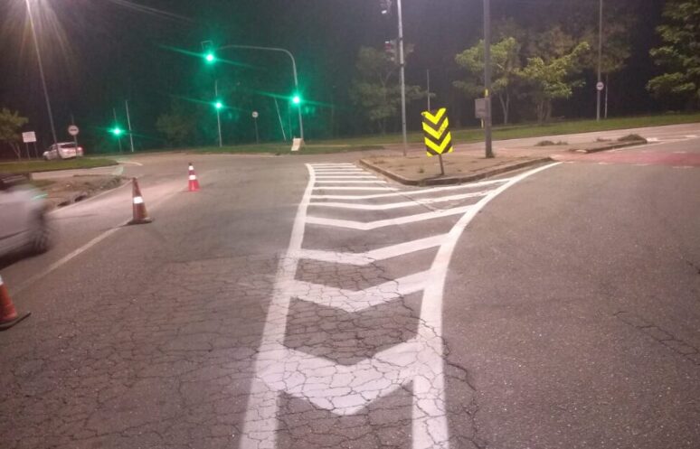 A iniciativa contempla aproximadamente 2.300 metros quadrados de sinalização, incluindo nova pintura de linhas de bordo, linhas de eixo, lombadas, faixas de pedestres, entre outros.