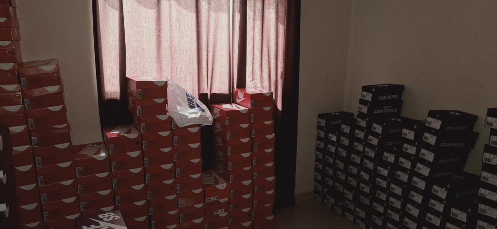 No entanto, as equipes tinham a informação que ele estaria no local e, durante revista nos endereços, localizaram, em uma das casas, os milhares de pares de tênis, ocupando quatro quartos da residência.