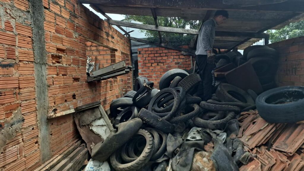 O local, onde funciona uma borracharia, já apresentava histórico de autuações pela Zoonoses, que chegou até o endereço por meio de denúncias realizadas por munícipes. O material apresentava condições propícias para a proliferação dos mosquitos transmissores da dengue e outras arboviroses, contendo água com larvas.