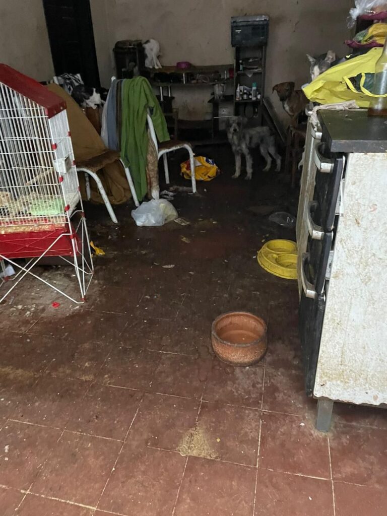 Os policiais civis receberam informações sobre uma residência onde vários animais estariam vivendo em condições deploráveis. Ao chegarem ao local, depararam-se com uma cena de extrema precariedade, com sujeira e fezes espalhadas pelos cômodos. Cerca de 50 cães e gatos foram encontrados em condições precárias, sem acesso adequado a alimentos, água ou cuidados veterinários.