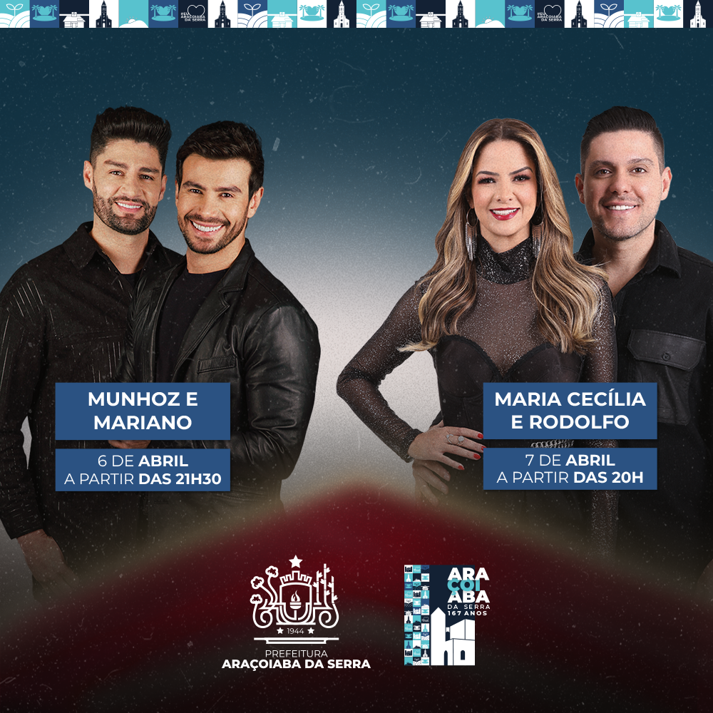 - Show Munhoz e Mariano – 21h30 – Praça Coronel Almeida