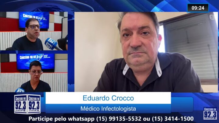 Eduardo Crocco, médico infectologista, coordenador do Serviço de Controle de Infecção Hospitalar do CHS, do Hospital Modelo e Notrecare Sorocaba, foi entrevistado, via skype, no Jornal da Cruzeiro desta terça-feira (3).