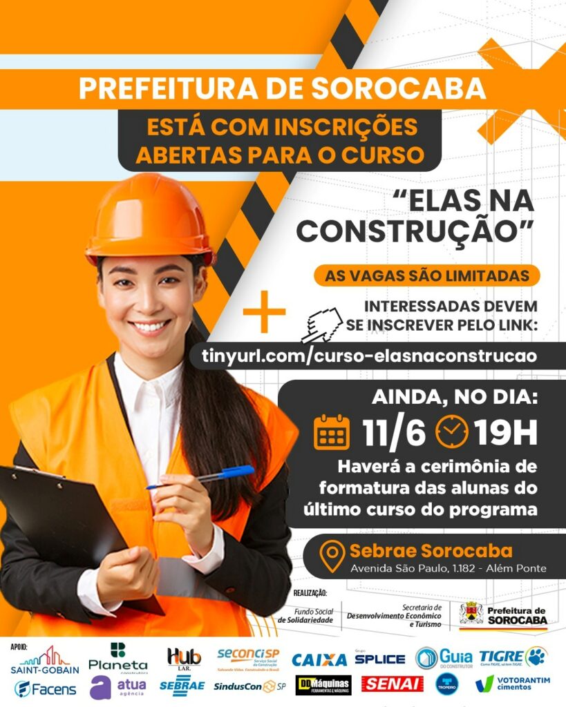 As inscrições para o programa “Elas na Construção” estarão abertas até o final de junho e as novas turmas iniciarão nos meses de julho e agosto. Para participar, é necessário ter mais de 18 anos. As inscrições podem ser feitas no link: https://forms.office.com/r/i2k5sxhszy
