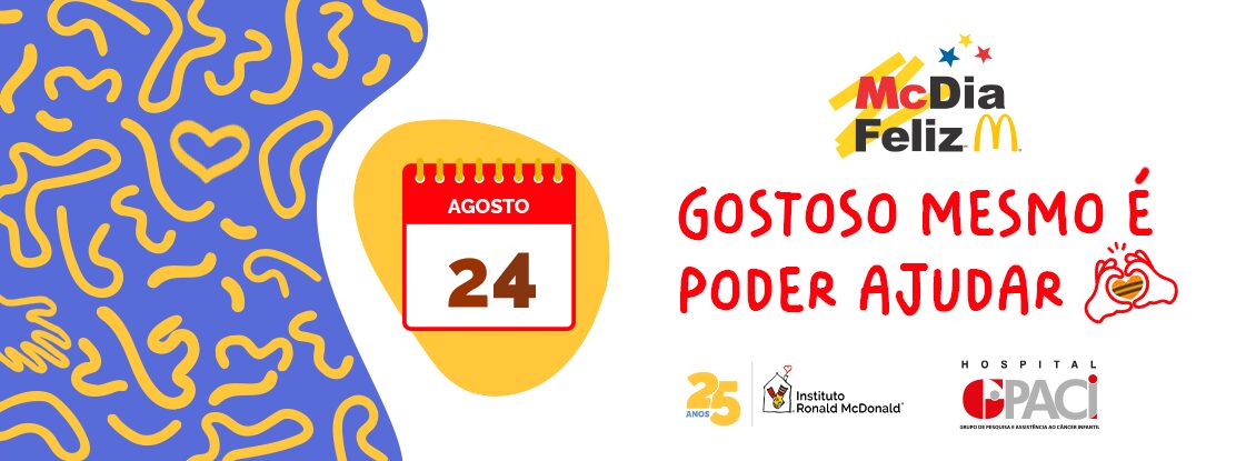A 36ª edição do McDia Feliz 2024 acontecerá no dia 24 de agosto (sábado) e toda a renda obtida com a venda dos lanches BigMc nesta data, além das camisetas exclusivas da data, será 100% revertida para o custeio do tratamento oncológico das crianças e adolescentes do Hospital GPACI.