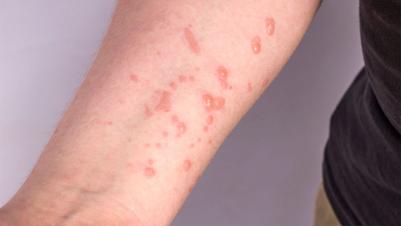 As lesões podem ser planas ou levemente elevadas, preenchidas com líquido claro ou amarelado, podendo formar crostas que secam e caem. O número de lesões pode variar de algumas a milhares. As erupções tendem a se concentrar no rosto, na palma das mãos e na planta dos pés, mas podem ocorrer em qualquer parte do corpo, inclusive na boca, nos olhos, nos órgãos genitais e no ânus.